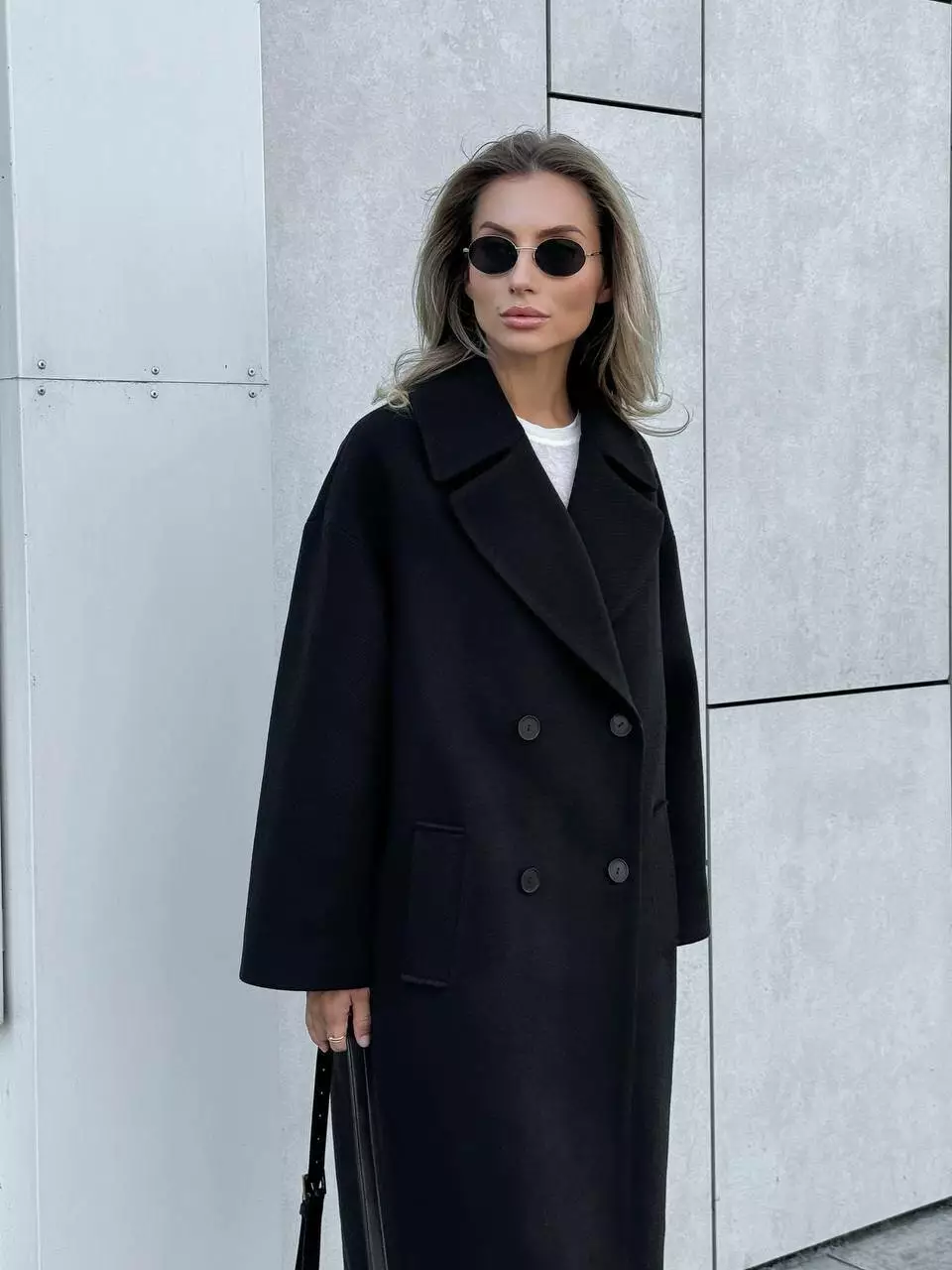 Стильне пальто оверсайз прямого крою зі спущеними плечима