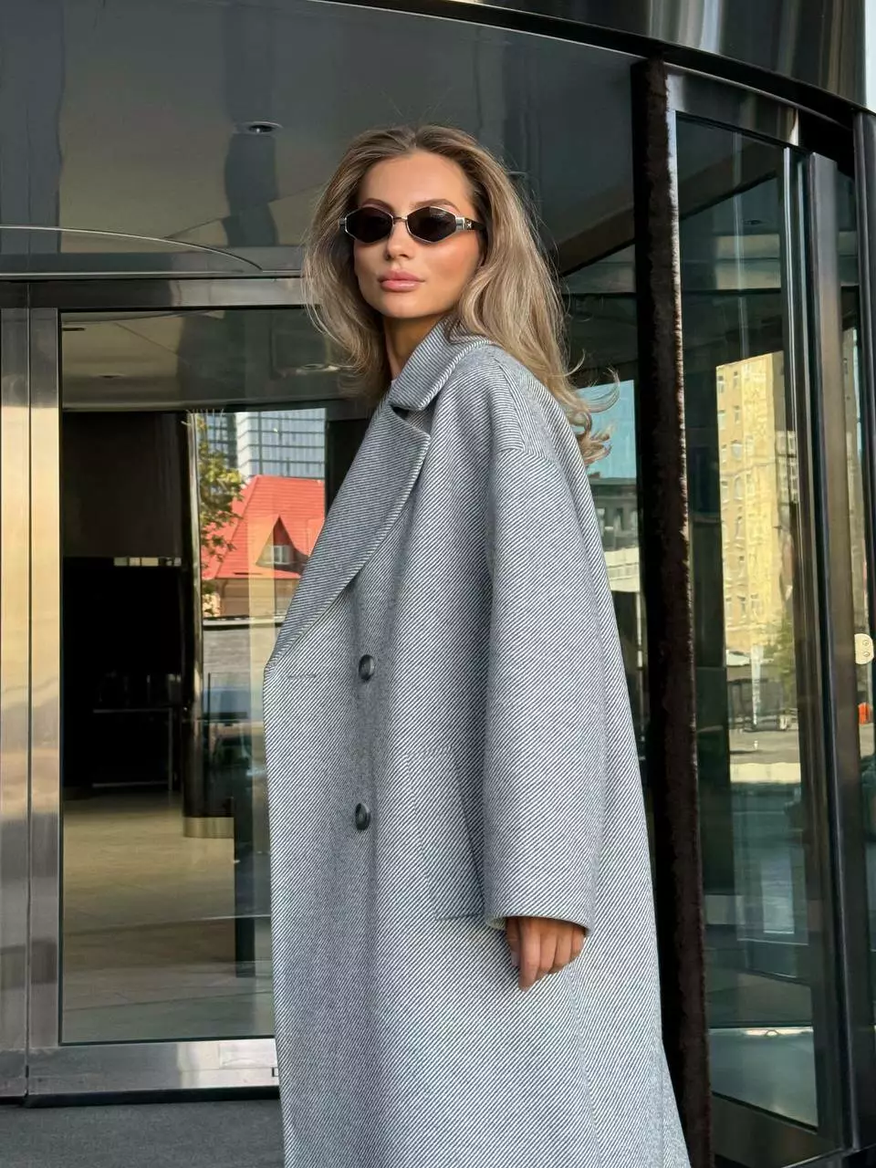 Стильне пальто оверсайз прямого крою зі спущеними плечима