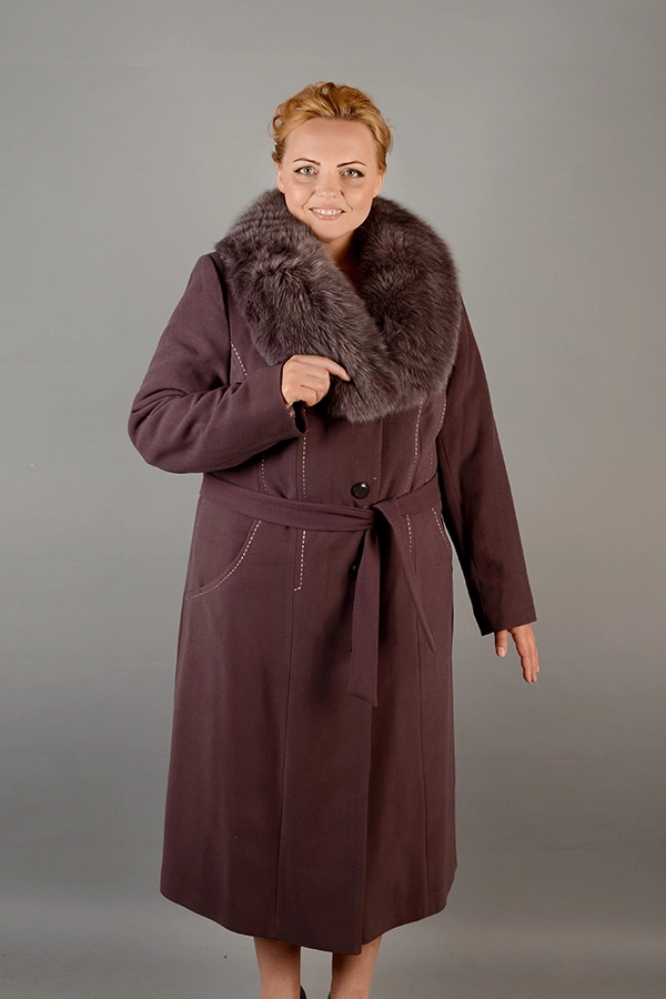 Длинное зимнее пальто. Утеплитель - синтеватин. Крой приталенный, пояс в комплекте. Застежка - пуговицы, вышевка пунктир понад швами. Два прорезных кармана. Воротник отолжной, оторочен натуралдьным мехом песуа, съемный.  Длина изделия 110 см. Размерный ряд модели 48-58. Цвета в наличии баклажан, васильковый, черный.