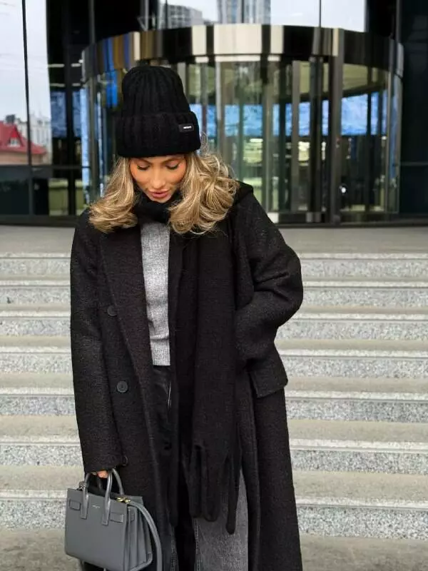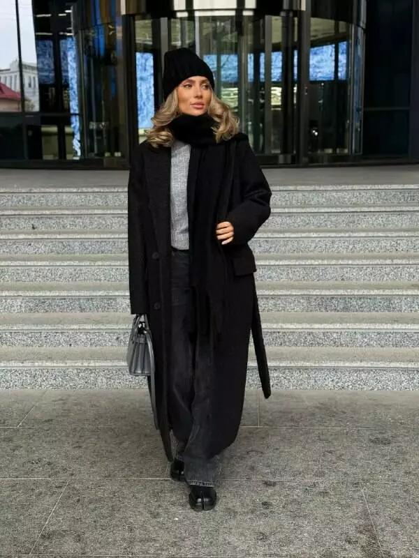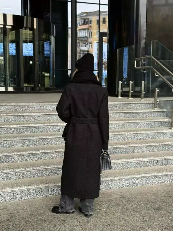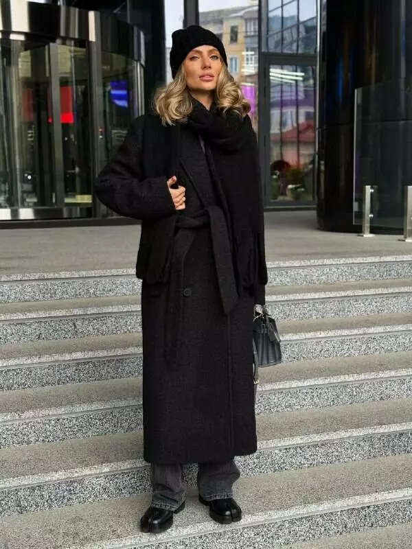 Трендове подовжене двобортне пальто класичного крою з об'ємними плечима Дизайн пальто створений, щоб відчувати себе неймовірно комфортно та впевнено у будь-якій ситуації, 2 діючі кишені та шліца по спинці внизу Застібається на гудзики, пояс в комплекті