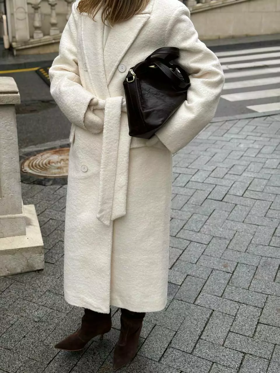 Трендове подовжене двобортне пальто класичного крою з об'ємними плечима Дизайн пальто створений, щоб відчувати себе неймовірно комфортно та впевнено у будь-якій ситуації, 2 діючі кишені та шліца по спинці внизу Застібається на гудзики, пояс в комплекті