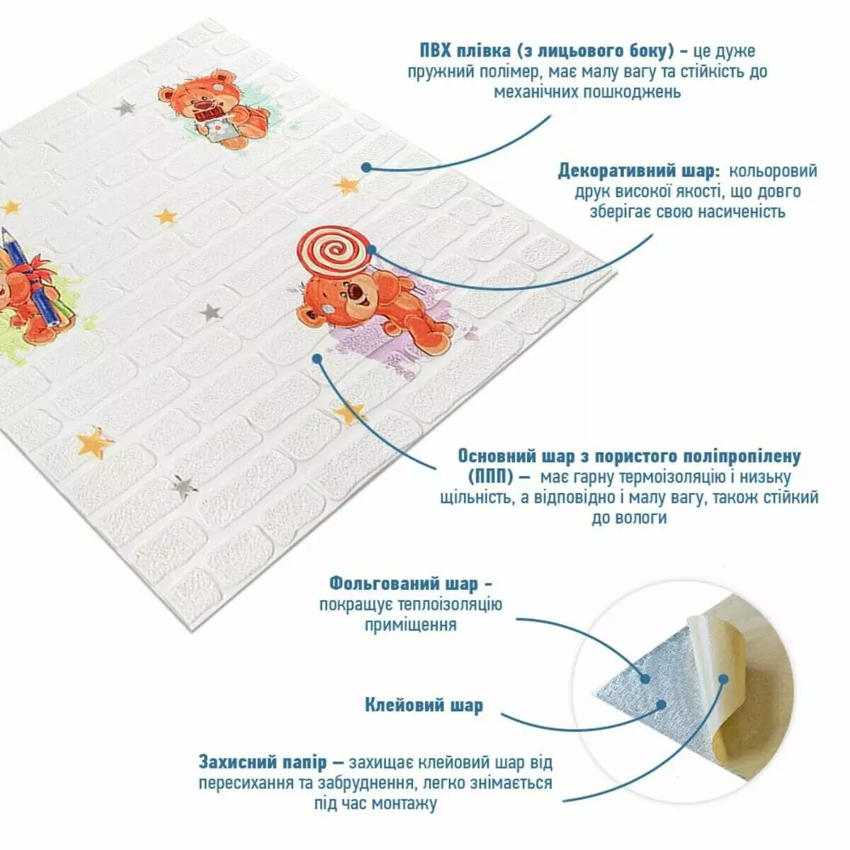 Панель стінова 3D 700х700х4мм Ведмедики на білому фоні SW-00001975