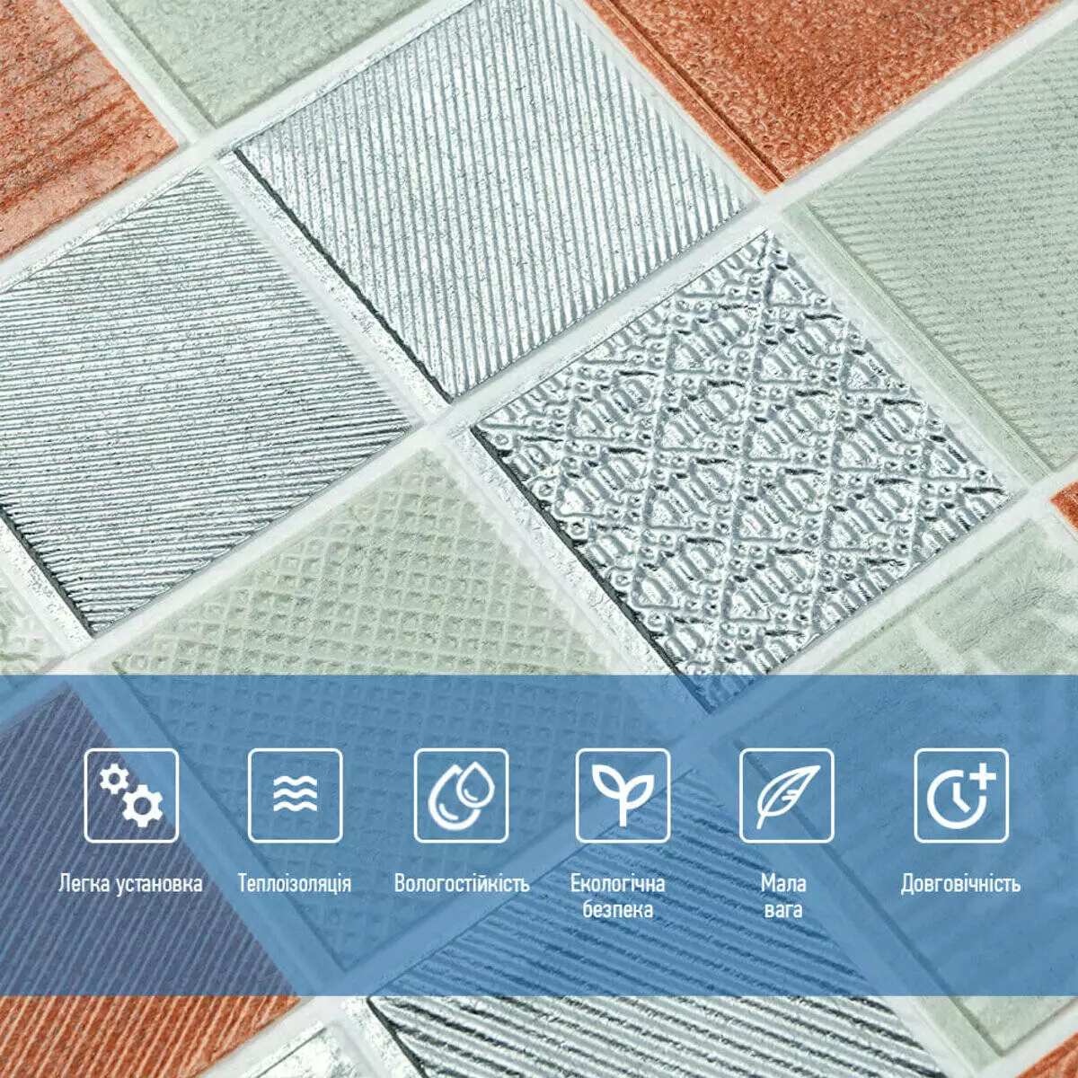 - Легкість монтажу: наявність клейового шару дозволяє встановити