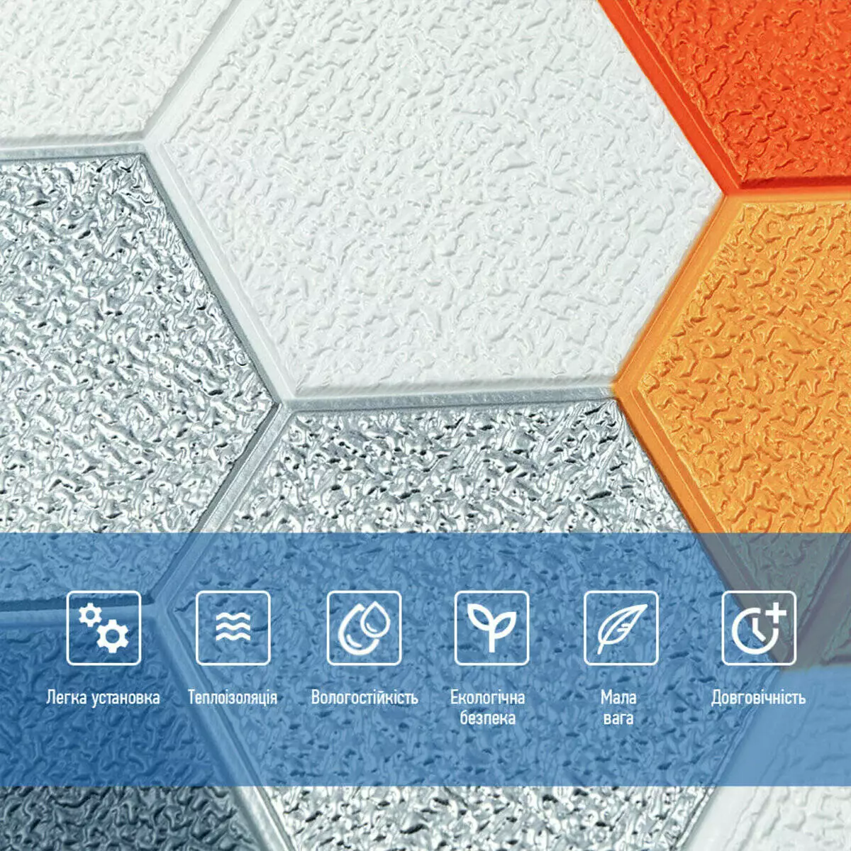 - Легкість монтажу: наявність клейового шару дозволяє встановити