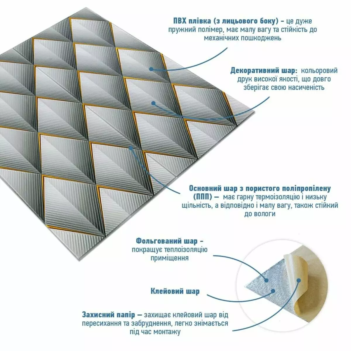 клейового шару, що дозволяє встановити панелі без необхідності