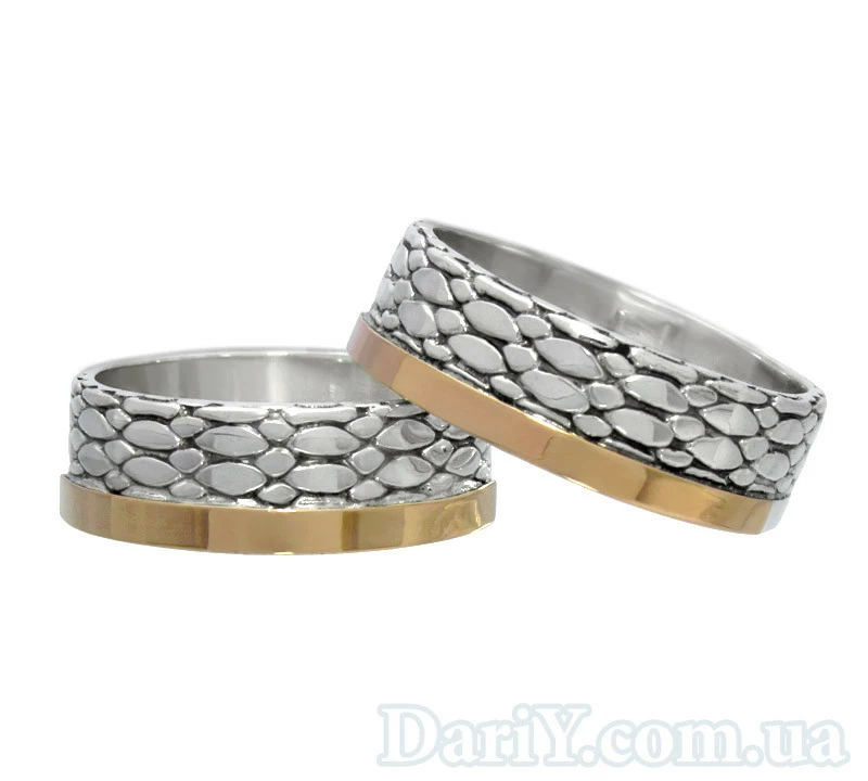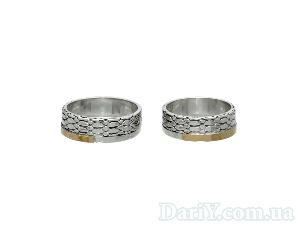 Серебряные обручальные кольца с золотыми накладками, черненые.