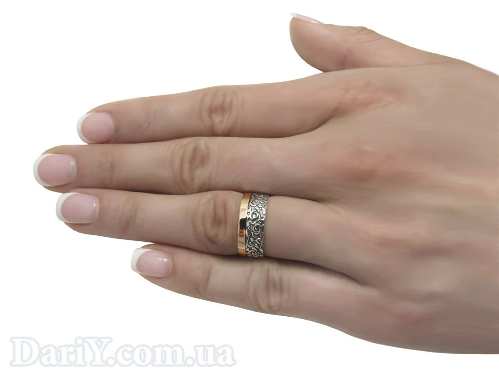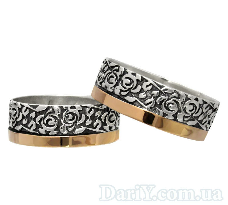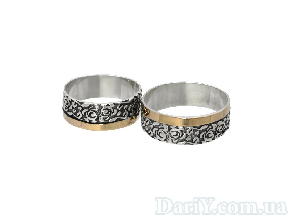 Серебряные обручальные кольца с золотыми накладками, черненые.