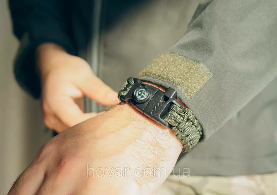 сплетений з паракорду. Має вмонтований компас, щоб ви не заблукали