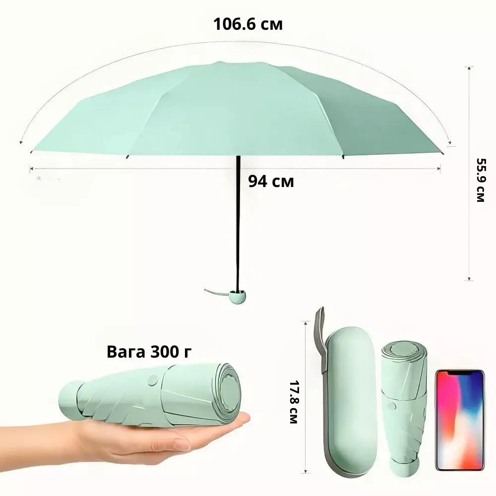 Кишенькова парасолька у футлярі від дощу та сонця, механічна, 8