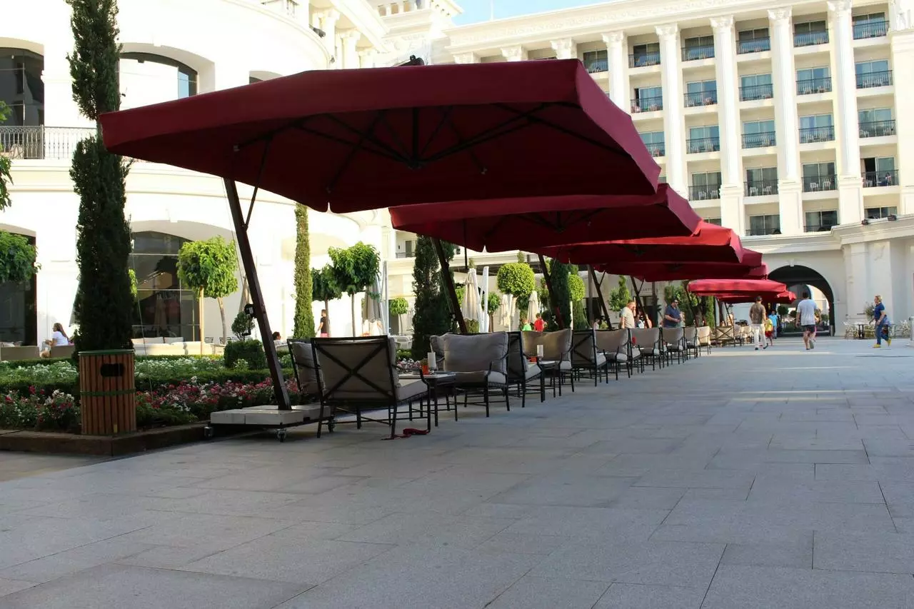 басейну, відкритих літніх майданчиках кафе, барів і ресторанів.