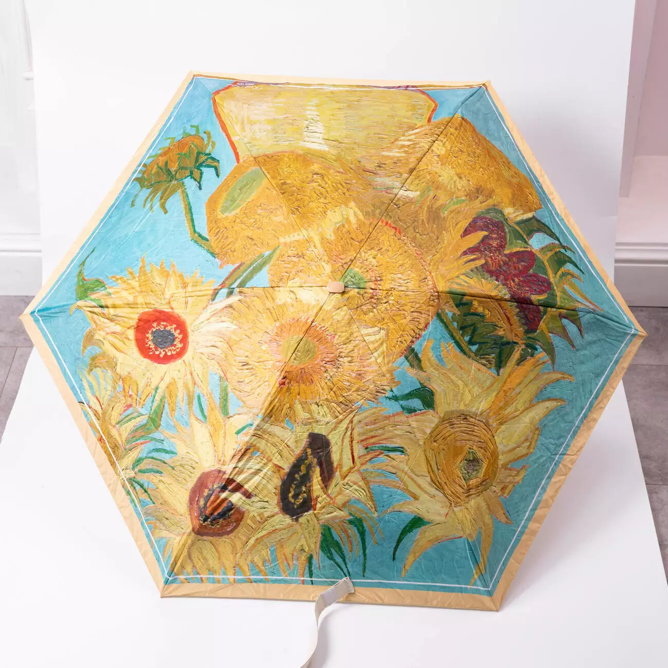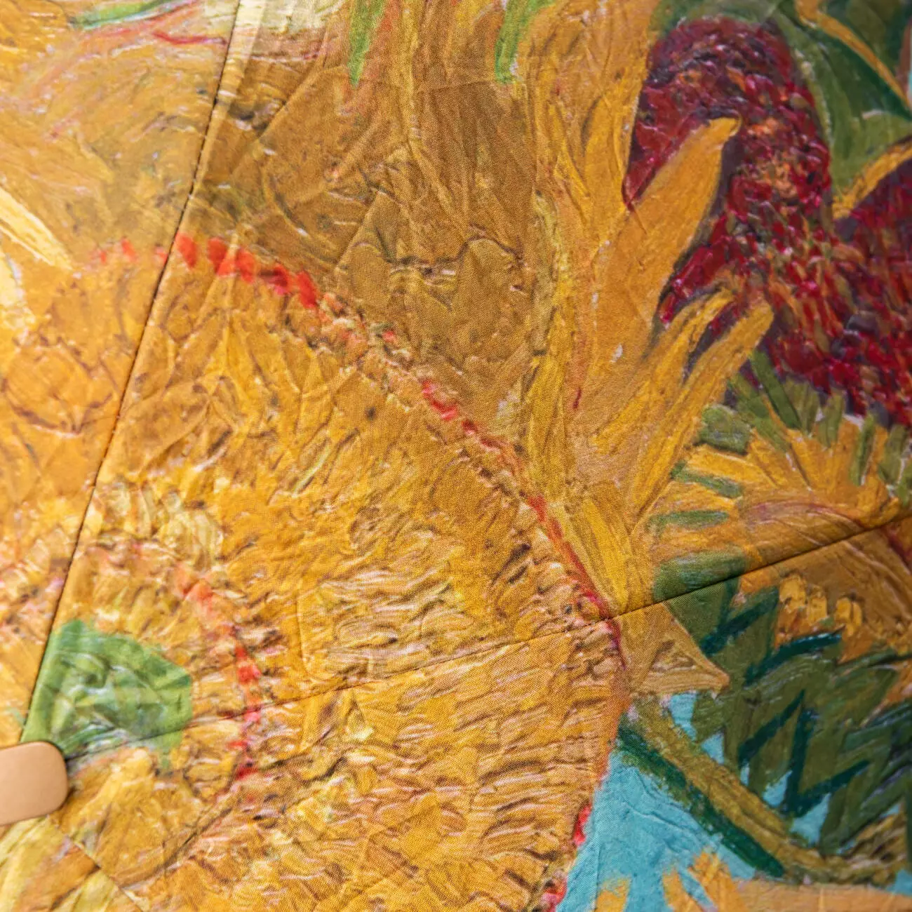 Складна механічна парасоля з куполом, прикрашеним відомою картиною "Соняшники", стане практичним аксесуаром для щоденного використання. Вона поєднує функціональність із виразним дизайнерським оформленням, роблячи її не лише захистом від дощу, а й стильним доповненням до образу.