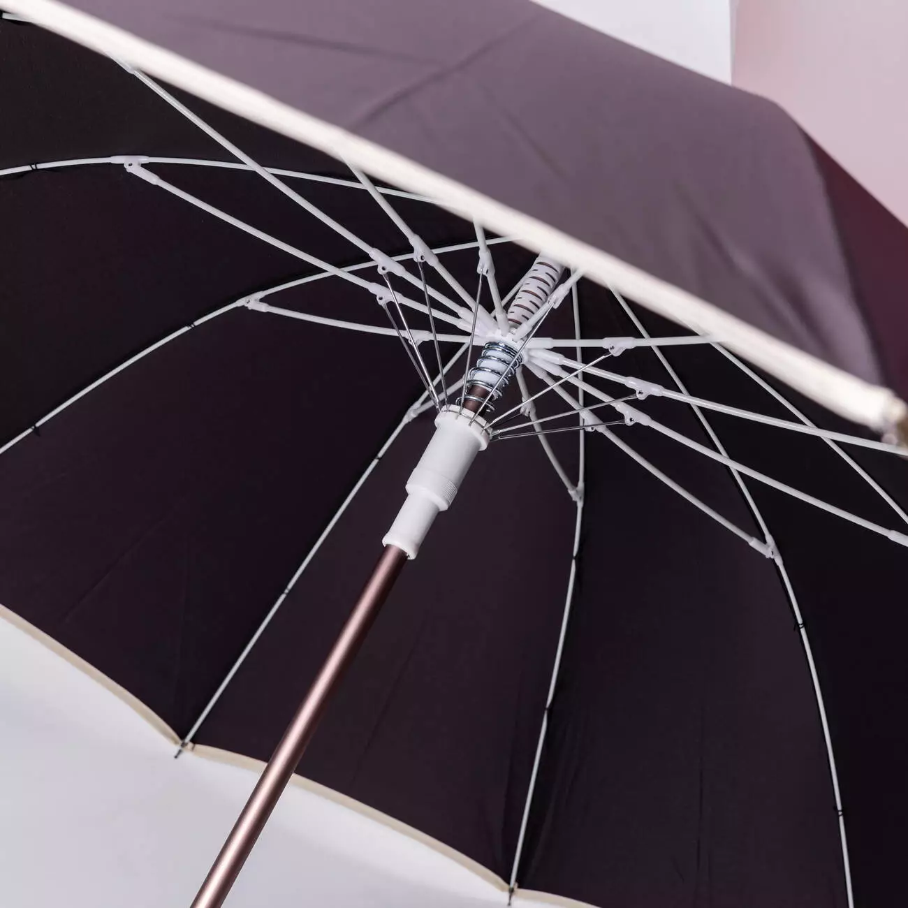 Основою виробу є міцний металевий стрижень, який забезпечує стійкість конструкції. Спиці виконані зі склопластику — матеріалу, що поєднує легкість і гнучкість, завдяки чому купол краще витримує навантаження вітру. Пластикова ручка зручно лежить у руці та має практичну форму для щоденного користування.