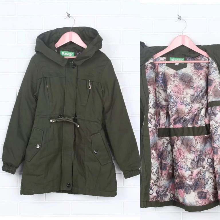 Описание: куртка застегивается на молнию и кнопки, снаружи два прорезных кармана, капюшон вшитый, по талии кулиска с фиксаторами. Длина по спинке 62 см, длина рукава 50 см. Измерение произведено на размер 128