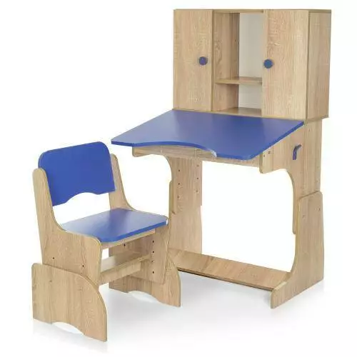 Фотография 1 товарной позиции интернет-магазина детских игрушек www.smarttoys.com.ua Парта W 903-14 шафа, регул. висота (4 полож.), стільчик, дерево, синя фурнітура.