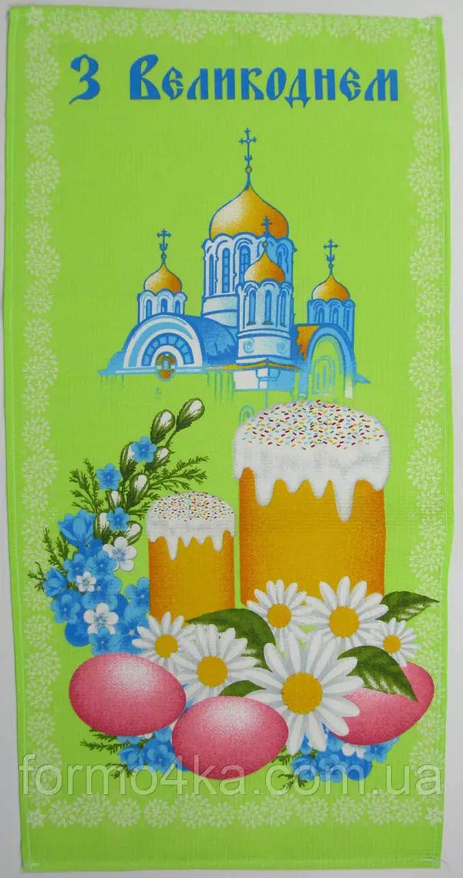 Пасхальное вафельное полотенце "З Великоднем" салатовое