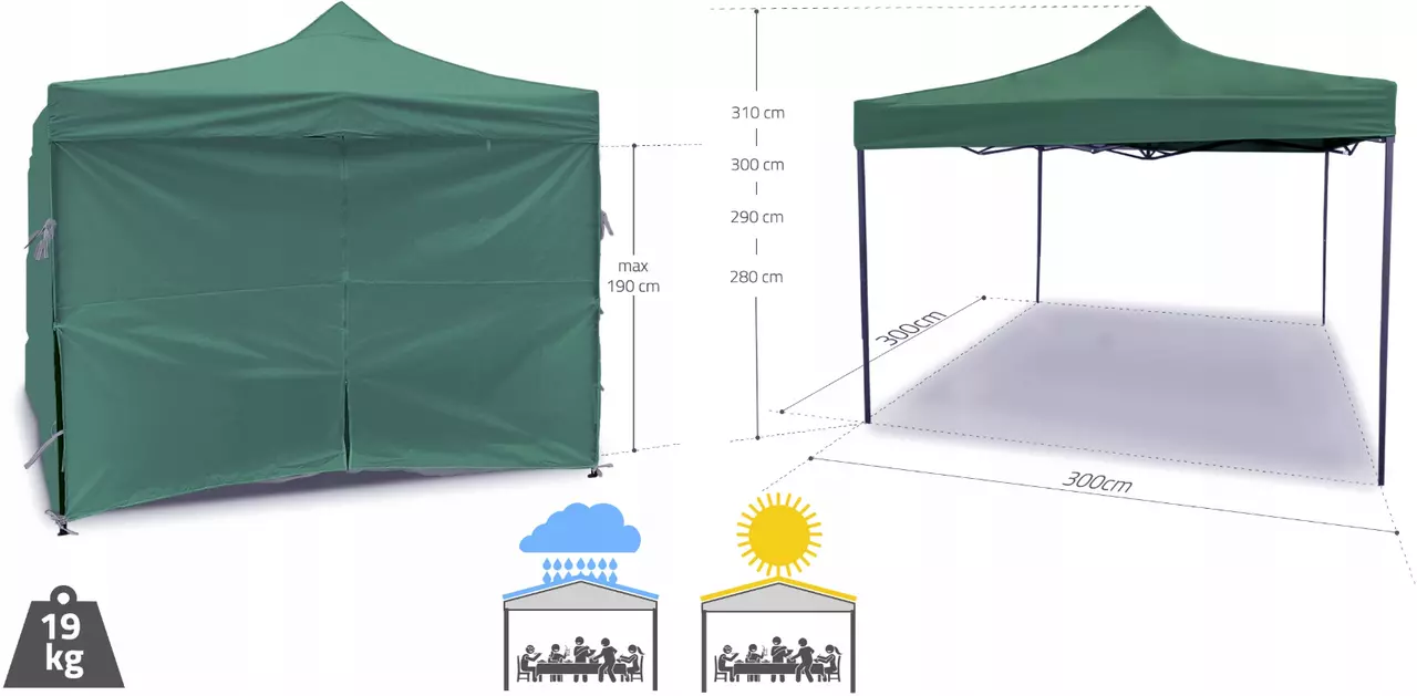Высота павильона регулируется на 4 уровнях (280, 290, 300 и 310 см), поэтому вы можете легко адаптировать его под свои нужды.