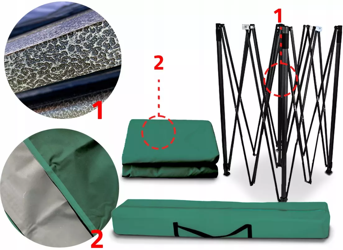 Система защелок позволяет легко собирать, разбирать и регулировать складной павильон.
