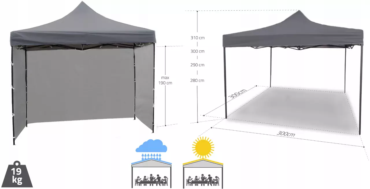 Высоту павильона можно регулировать на 4 уровнях (280, 290, 300 и 310 см), поэтому вы легко сможете адаптировать его под свои нужды.