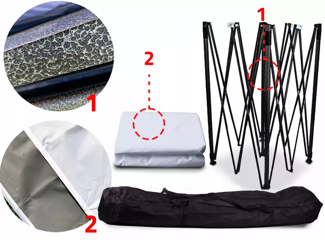 Система защелок облегчает сборку, разборку и регулировку складного павильона.