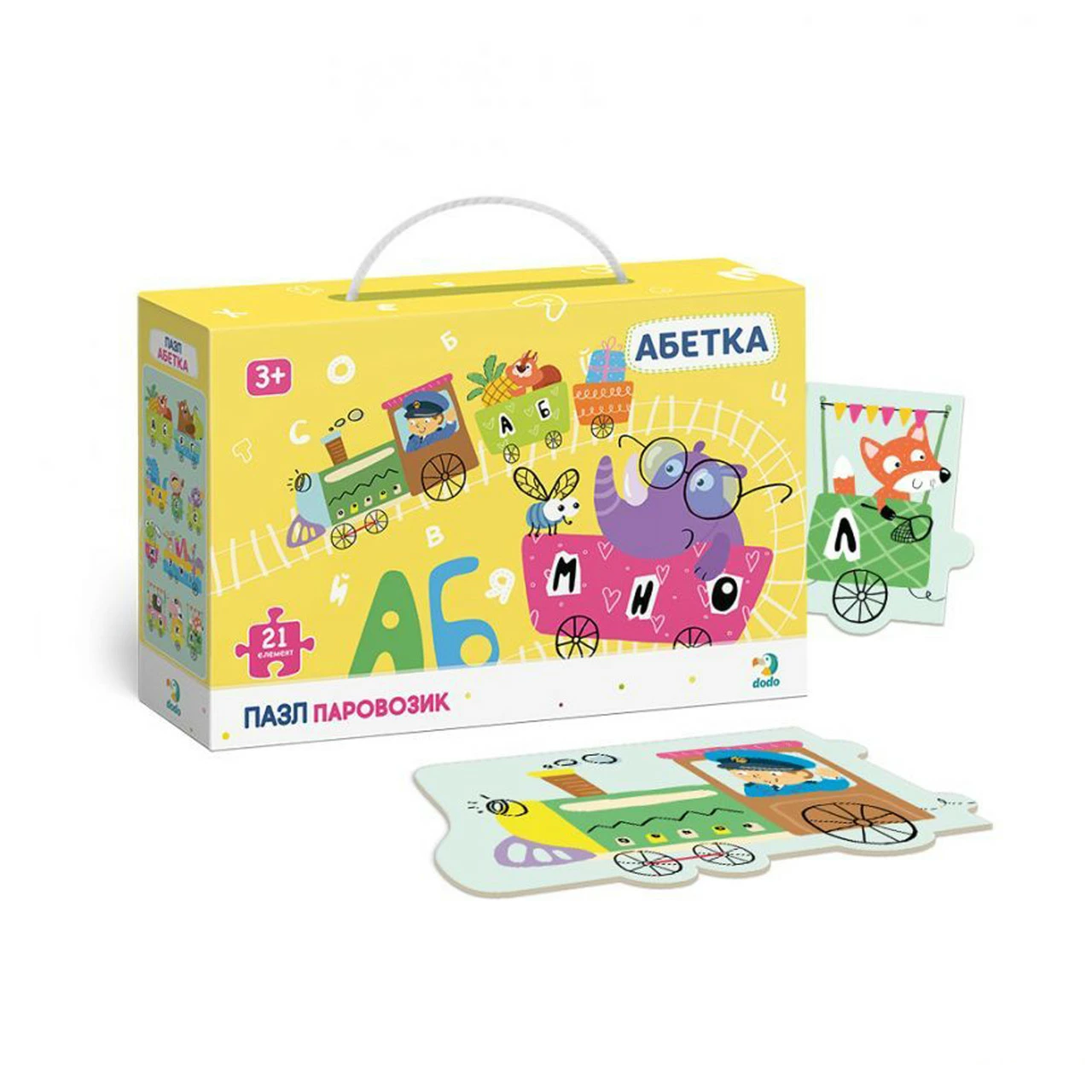 Пазл "Абетка Паровозик" 300148 от ТМ "Dodo" состоит из 21 элемента.