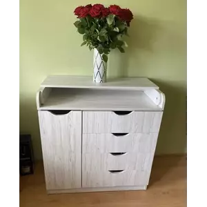 Розміри пеленального комода: 90*43*95 см, висота до пеленатора – 90 см. Розмір пеленальної поверхні: 81*73 см.