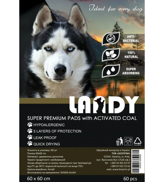 LANDY Пелюшки для домашніх тварин з активованим вугіллям 60х90 (60 шт)