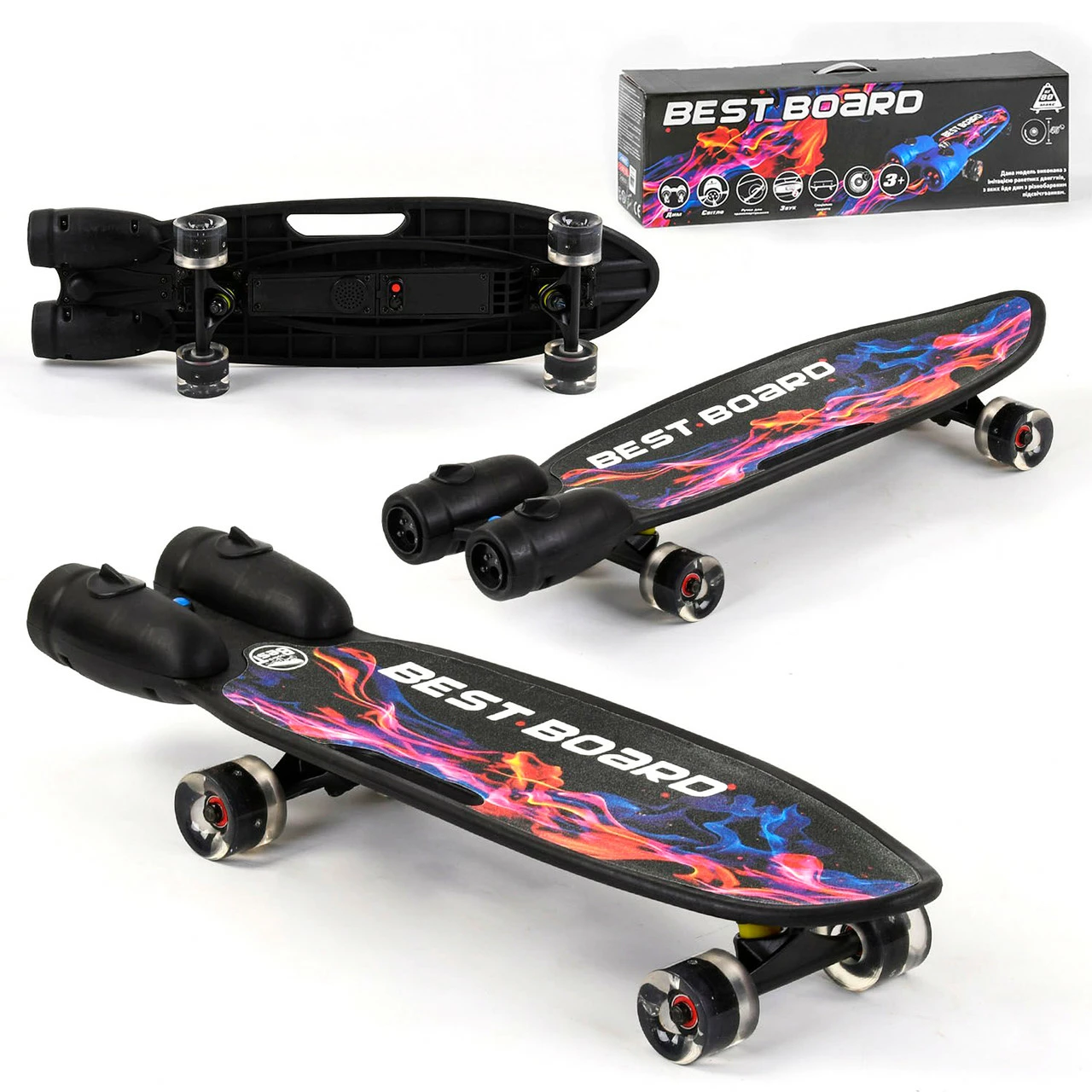 Пенни борд оснащён двумя турбинами в задней части, которые