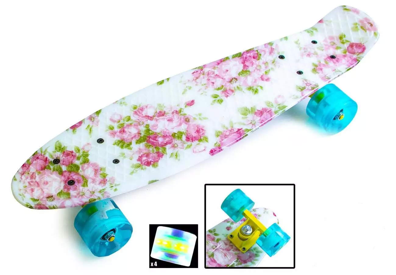 Penny board "Flowers". Светящиеся колеса