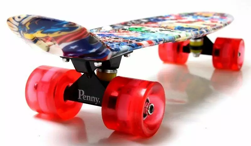 <p><strong>Penny Board "Graffiti" NBA </strong> на Sportdrive.com.ua</p><br /> <p>Описание и преимущества Penny Board "Graffiti" NBA:</p><br /> <p>Колеса данного пенни при катании светятся!</p><br /> <ul><br /> <li>изделие торговой марки "Penny Board";</li><br /> <li>высокопрочный пластик в основе деки - легкость и долговечность;</li><br /> <li>компактный и вместительный размер доски: 55 х 15 см, толщина 11 мм;</li><br /> <li>подходит для детей, подростков;</li><br /> <li>узорный рисунок с антискользящим эффектом;</li><br /> <li>прочная металлическая подвеска;</li><br /> <li>добротные подшипники ABEC-7;</li><br /> <li>PU-колеса из полиуретана - бесшумность и маневренность;</li><br /> <li>уровень жесткости колес – 94А;</li><br /> <li>предел нагрузки - 80 кг;</li><br /> <li>дизайн и цветовое оформление: разноцветный (красные светящиеся колеса).</li><br /> </ul><br /> <p>Купить Penny Board "Graffiti" NBA и подарить себе счастье от активной жизни вместе с современным спортом!</p><br /> <p>Невероятно модный, яркий и прочный <strong>Penny Board "Graffiti" NBA</strong> станет для вас лучшим другом. Выбрали модель скейта, определились с цветом? В таком случае ничто не мешает вам уже сейчас осуществить свою мечту. Оформив заказ на нашем сайте, уже через 1-2 дня с момента отправки, вы можете получить свой товар на складе курьерской службы!</p><br />