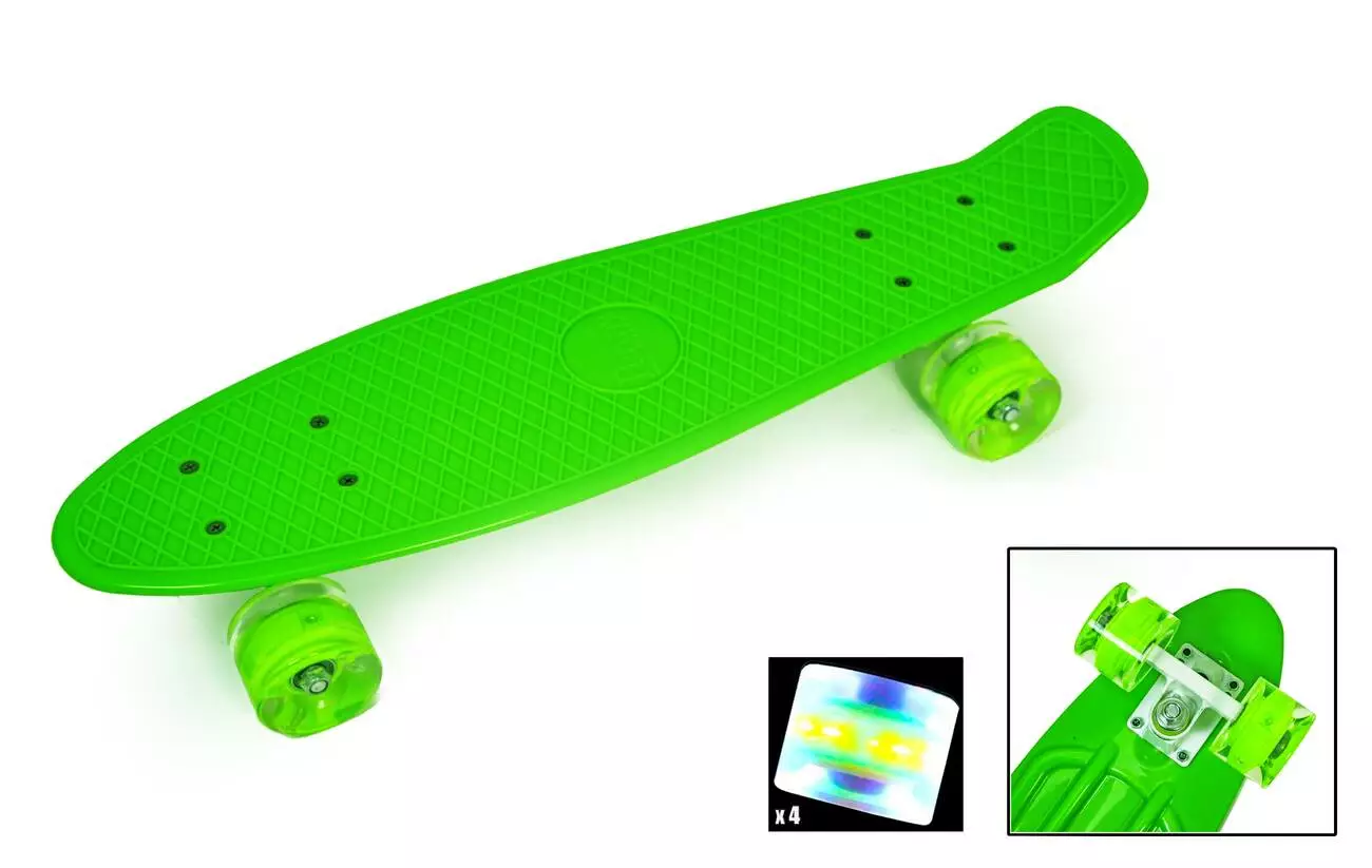 <p>Сочный, позитивный и дерзкий цвет <strong>Скейтборда "Penny Board Green Светящиеся колеса"</strong> не может оставить кого-то равнодушным. Салатовый цвет доски и светящиеся колесики (фиолетовые или желтые - на выбор) поставят владельца скейта в центр всеобщего внимания, создадут праздничное настроение и подарят позитив и радость всем прохожим. <strong>Покупайте Скейтборды "Penny Board Green Светящиеся колеса"</strong> для детей, подростков и даже миниатюрным взрослым, занимайтесь спортом с удовольствием!</p><br /> <p>Описание и преимущества Скейтборда "Penny Board Green Светящиеся колеса":</p><br /> <ul><br /> <li>изделие торговой марки "Penny Board";</li><br /> <li>усиленный пластик в основе доски - легкость и комфорт;</li><br /> <li>компактный размер доски: 55 х 15 см, толщина 10 мм;</li><br /> <li>подходит для детей, девушек с небольшим весом и размером ноги;</li><br /> <li>антискользящая обработка поверхности;</li><br /> <li>прочная алюминиевая подвеска;</li><br /> <li>качественные подшипники ABEC-7;</li><br /> <li>бесшумные PU-колеса (полиуретан) с функцией свечения;</li><br /> <li>уровень жесткости колес – 90 А;</li><br /> <li>предел нагрузки - 80 кг;</li><br /> <li>дизайн и цветовое оформление: доска ярко-салатового цвета (колеса оранжевые).</li><br /> </ul><br /> <p>Купить Скейтборд "Penny Board Green Светящиеся колеса" и обеспечить себя увлекательным катанием при небольших затратах</p><br /> <p>Модный, стильный и <strong>недорогой Скейтборд "Penny Board Green Светящиеся колеса"</strong> - идеальный выбор для ребенка и подростка, а также взрослого с небольшим весом и размером ноги. Теперь Вы сможете совершать легкие и непринужденные городские прогулки вместе со своим новым другом в ярком цвете. Покупать скейтброды в нашем интернет-магазине выгодно и удобно - Вам нужно лишь определиться с моделью и выбрать необходимые параметры, оформить заказ и спокойно ждать пару дней, пока товар доставят в Ваш населенный пункт. Мы осуществляем отправку в любую точку на карте Украины, и уже через 1-2 дня заказ будет ждать Вас на складе курьерской службы. Для девочек и девушек, предпочитающих активный образ жизни, можно порекомендовать чудную модель с аналогичными характеристиками в красивом фиолетовом цвете - <strong><a href="http://sportdrive.com.ua/product/skeyt-penny-board-violet-svetyashchiesya-kolesa-do-70-kg">Скейт Penny Board Violet Светящиеся колеса</a></strong>.</p><br />