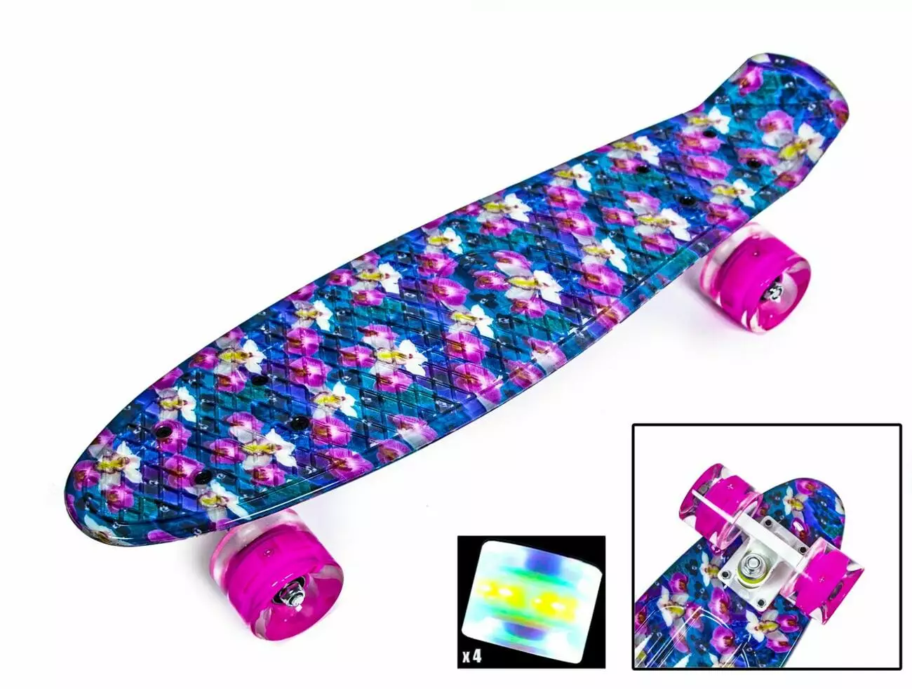 <p><strong>Penny Board "Орхидея"</strong> на Sportdrive.com.ua</p><br /> <p><strong>Описание и преимущества Скейтборда Penny Board</strong><strong>:</strong></p><br /> <ul><br /> <li>изделие торговой марки "Penny Board";</li><br /> <li>усиленный пластик в основе доски - легкость и комфорт;</li><br /> <li>компактный размер доски: 57 х 15 см, толщина 11 мм;</li><br /> <li>антискользящая обработка поверхности;</li><br /> <li>прочная алюминиевая подвеска;</li><br /> <li>качественные подшипники ABEC-7;</li><br /> <li>светящиеся бесшумные PU-колеса (полиуретан);</li><br /> <li>уровень жесткости колес – 92 А;</li><br /> <li>предел нагрузки - 75 кг;</li><br /> </ul><br /> <p>Яркий, стильный и <strong>Penny Board "Орхидея"</strong> - лучший выбор для современных детей и подростков. Эти легкие, удобные и маневренный скейты пользуются широкой популярностью среди детей и взрослых во всем мире. Теперь у Вас есть реальная возможность идти в ногу со временем и стать обладателем этого чудного спортивного снаряда по выгодной цене. Покупать скейтброды в нашем интернет-магазине очень удобно: Вам нужно лишь определиться с моделью и выбрать необходимые параметры, оформить заказ и спокойно ждать пару дней, пока товар доставят в Ваш населенный пункт. Мы осуществляем отправку в любую точку на карте Украины, и уже через 1-2 дня заказ будет ждать Вас на складе курьерской службы.</p><br />