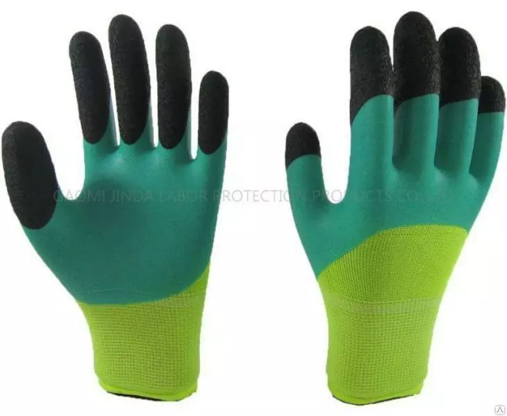 Перчатки Рабочие Нейлоновые стретч с ПВХ покрытием 300#(Зеленый) в упаковке 12 пар
