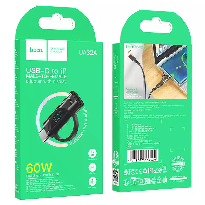 Перехідник HOCO UA32A Type-C(M) => Lighting(F), 60W, індикатор