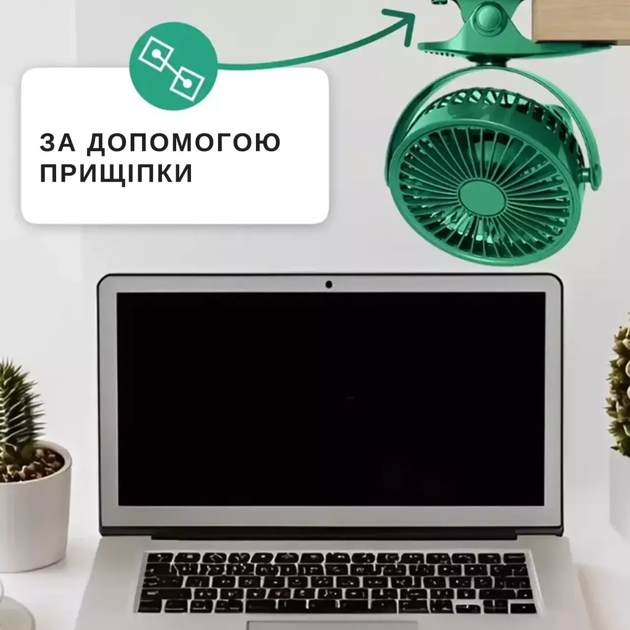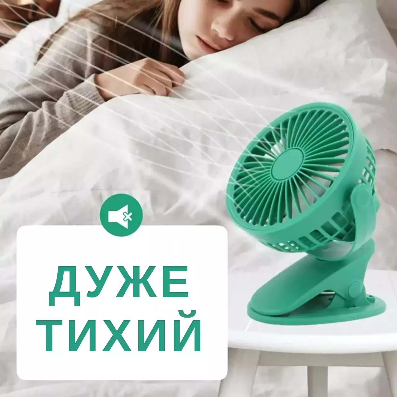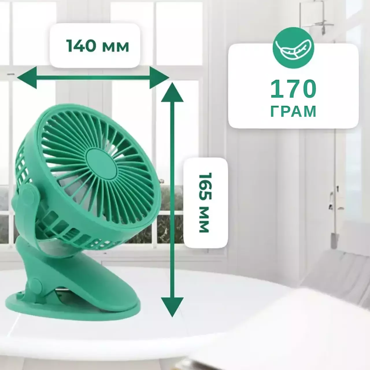 2. Удобное крепление-прищепка: Уникальная конструкция прищепки позволяет крепить вентилятор к любой поверхности — край стола, полки и т.д. Это обеспечивает максимальную гибкость и удобство в использовании.