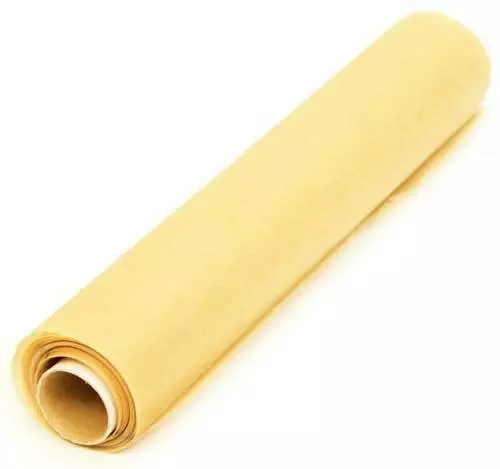 Пергамент для запекания – обычный пергамент, сходный с упаковочным. Это плотная гладкая бумага, чаще коричневого цвета, пропитанная раствором серной кислоты и из-за этого