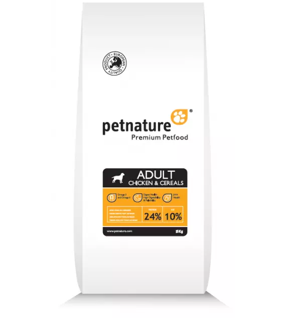 PET NATURE Збалансований сухий корм для дорослих собак всіх порід Курка i Зернові 15 кг