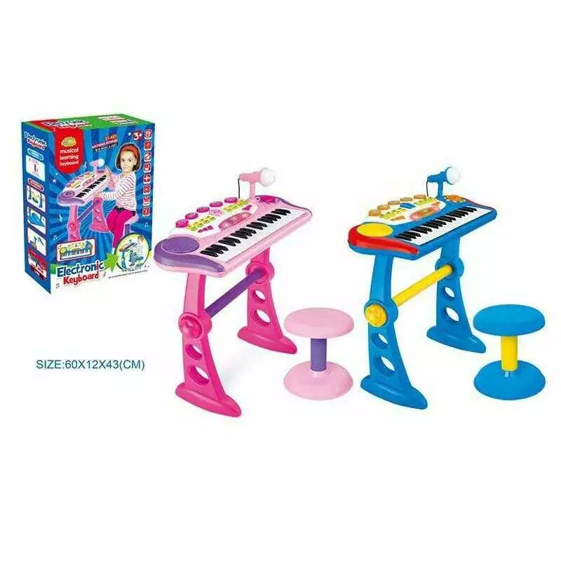 Піаніно BO 30-3 (6) 2 кольори, стільчик, 37 клавіш, світло, звук, музика, мікрофон, караоке, запис голосу, MP3, звуки тварин, працює від мережі або ба