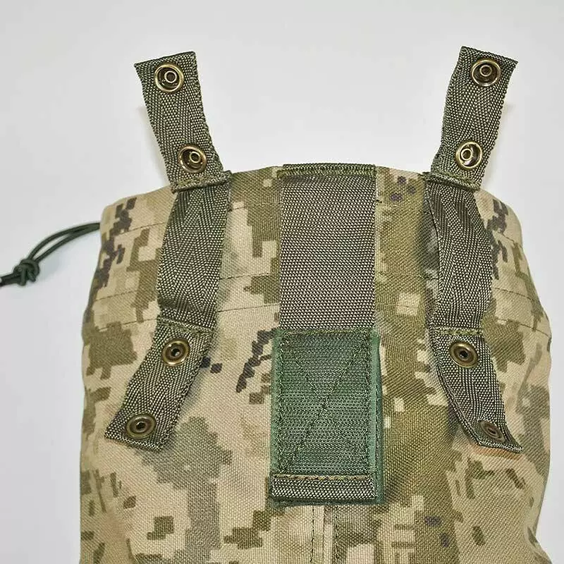 За систему Molle сумка кріпиться за допомогою двох петлеподібних хлястиків, які замикаються двома кнопками каппа.