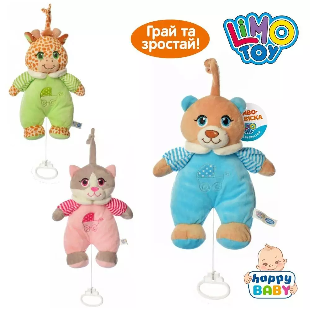 Фотография 1 товарной позиции интернет-магазина детских игрушек www.smarttoys.com.ua Підвіска A8168MB на візок/ліжечко, розтяжка, плюш, муз. (механічна), 3 види (тварина), 24 см.