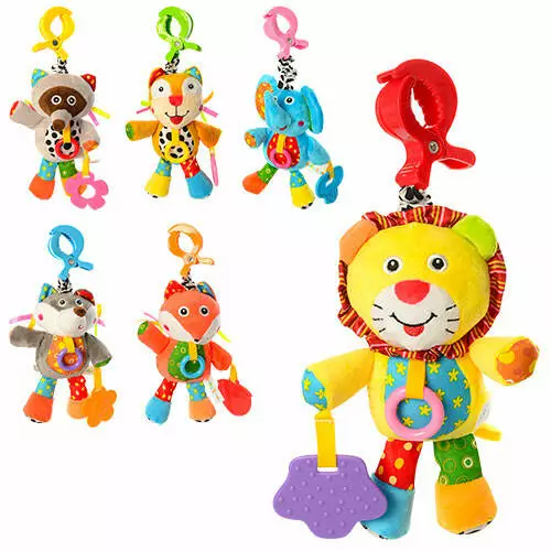 Фотография 1 товарной позиции интернет-магазина детских игрушек www.smarttoys.com.ua Підвіска на коляску X12410 тварина, прорізувач, плюш, 6 видів, кул., 15-9-7 см.