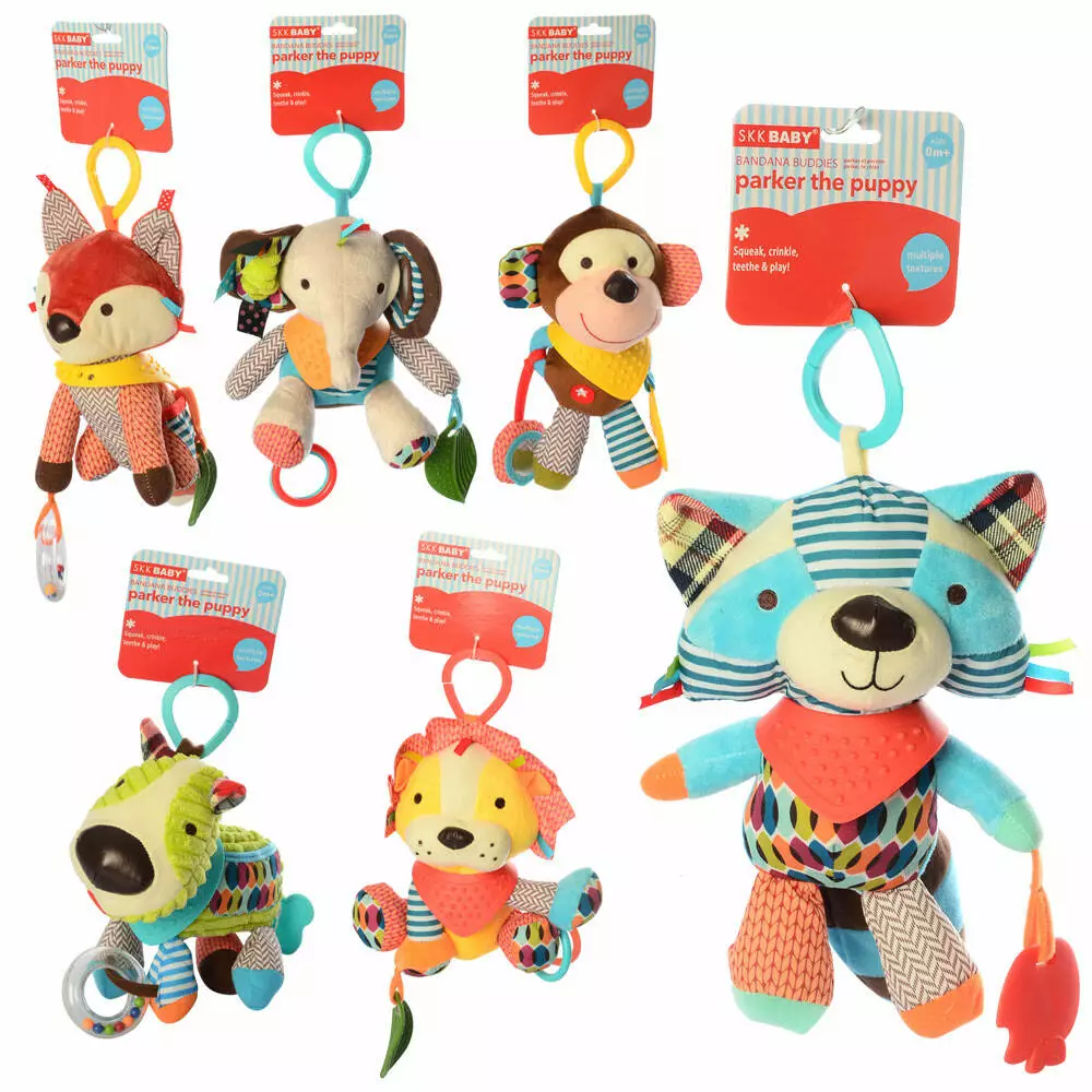 Фотография 1 товарной позиции интернет-магазина детских игрушек www.smarttoys.com.ua Підвіска на візок SKK-1 тварина, шарудіння, брязкальце, плюш, 6 видів, кул., 11-18-9 см.