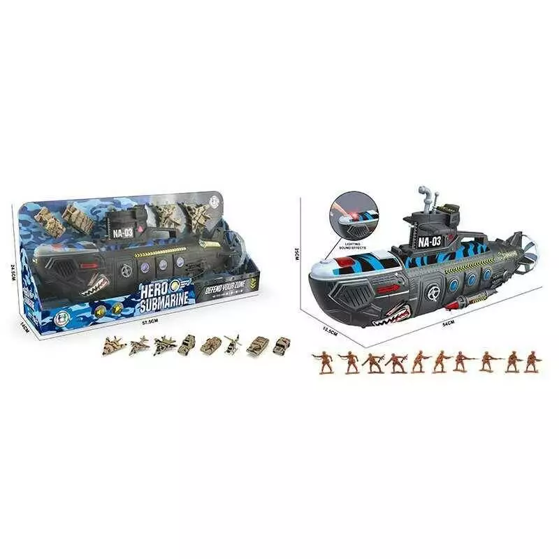 Підводний човен 1828-146 A (12) 19 елементів, звуки, підсвічування, рухливі елементи, ігрові фігурки: солдати, літаки, танки, в коробці