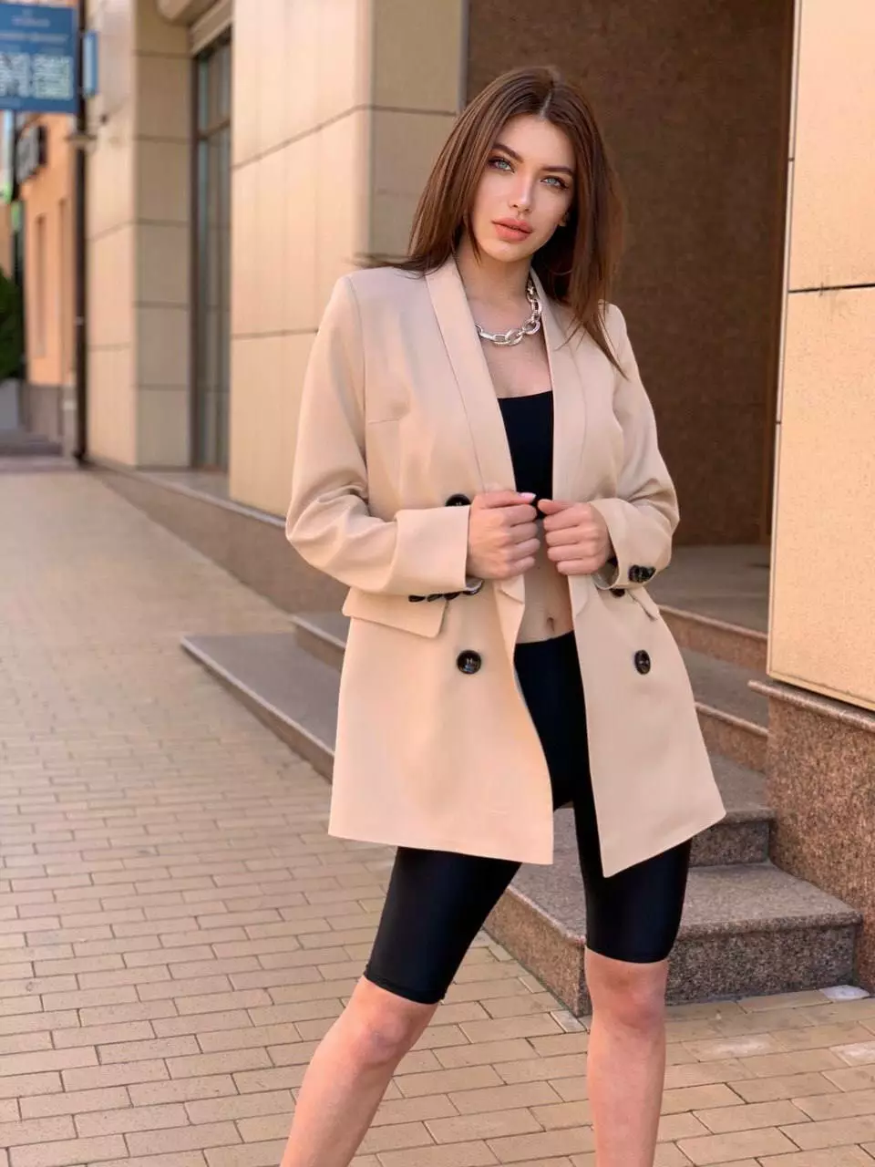 Стильний піджак з карманами, декорований ґудзиками Застібається на 2 пуговиці!