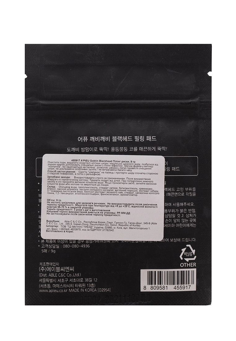 Пилинг-диски для лица Apieu Goblin Blackhead Peeling Pad, 9 г (8809581455917)
