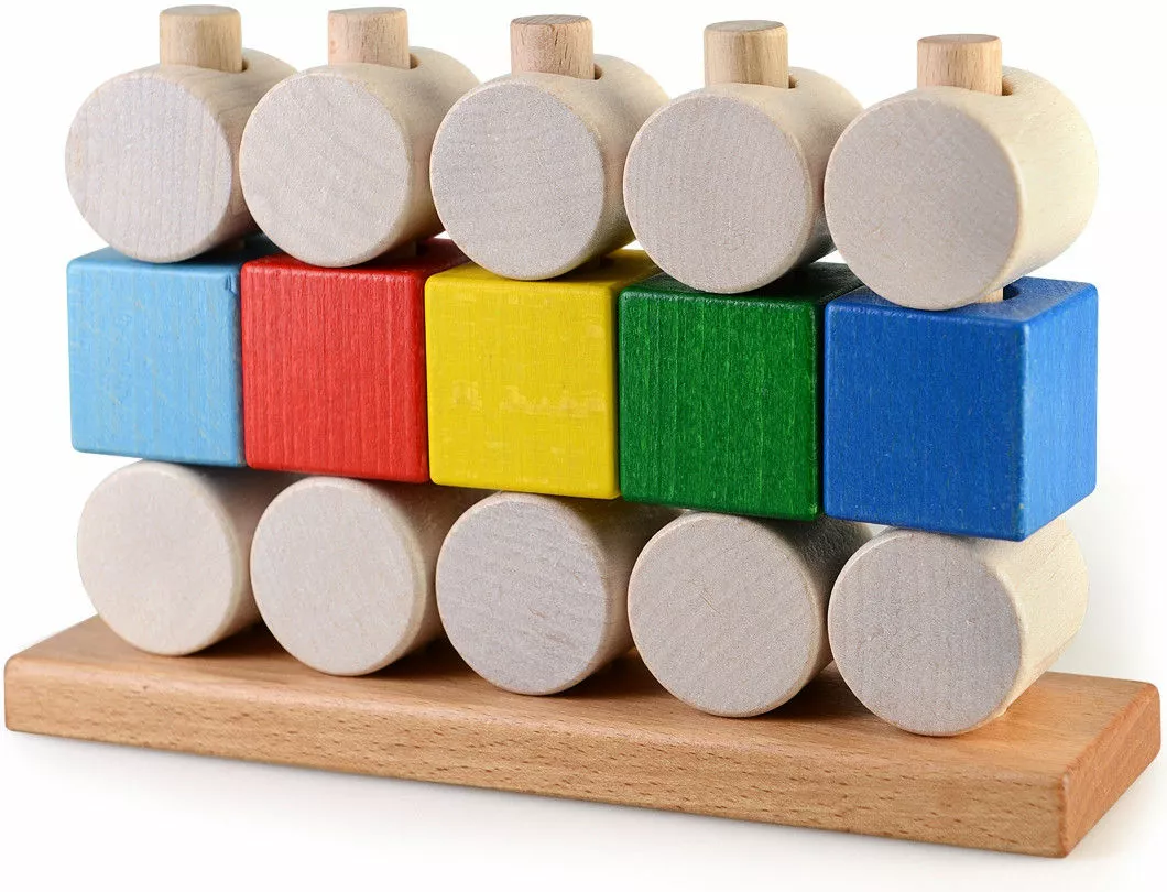 пяти штырьках нанизаны круглые и квадратные фигурки. Они удобного