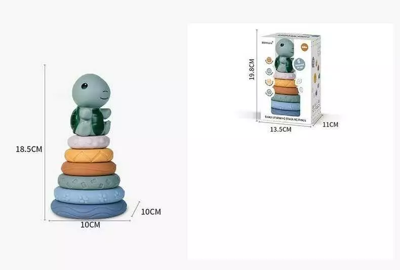 Пірамідка TT 2015 (72) розмір: 10х10х18.5 см, 6 кілець, звірятко, гума, в коробці