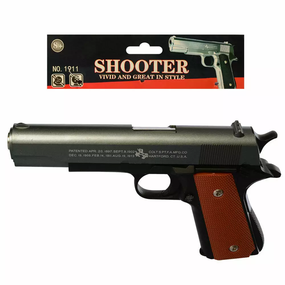 Фотография 1 товарной позиции интернет-магазина детских игрушек www.smarttoys.com.ua Пістолет 1911 метал, на кульках, кул., 17-27-3,5 см.