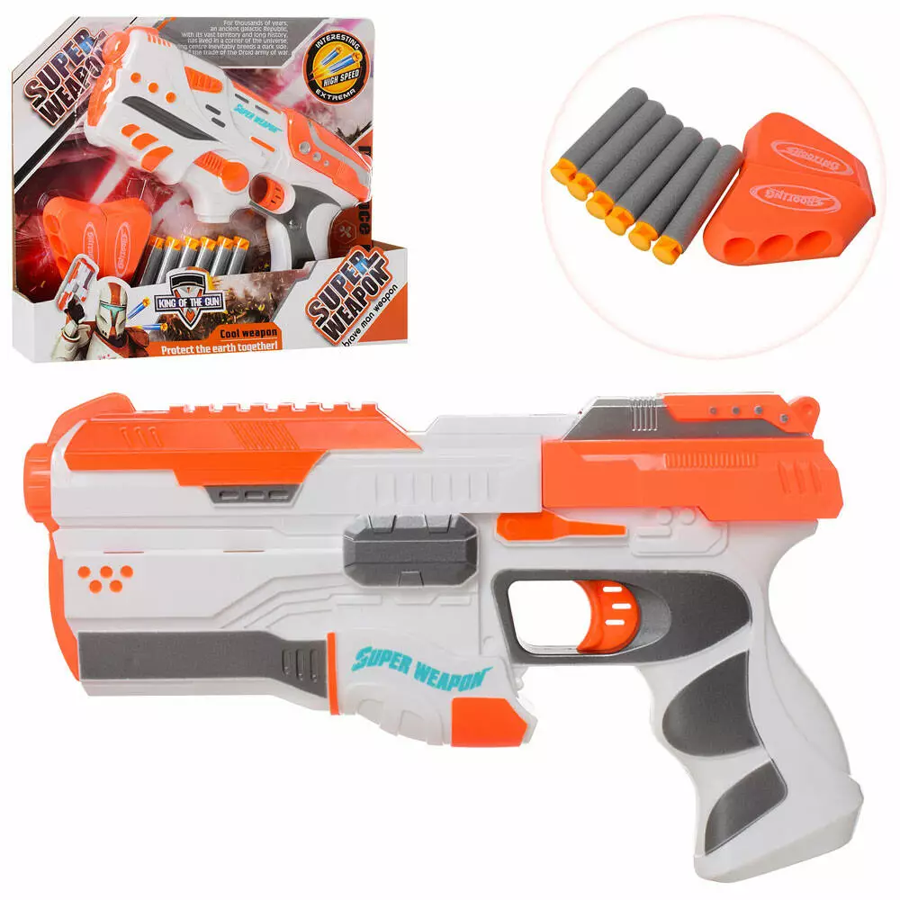Фотография 1 товарной позиции интернет-магазина детских игрушек www.smarttoys.com.ua Пістолет 921AB м'які кулі-присоски, 6 шт., обійма, 2 види, кор., 32-26-5 см.