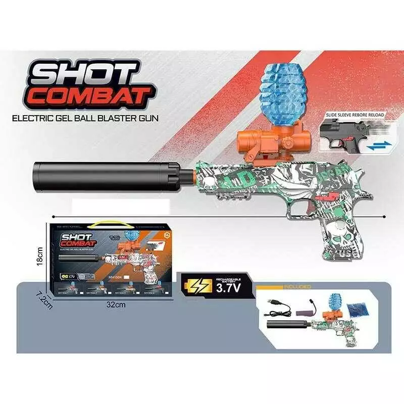 Пістолет MH 1504-2 (24) стріляє орбізами, автоматичний принцип, орбізи, ак. 7.4V, USB-кабель, глушник, в коробці