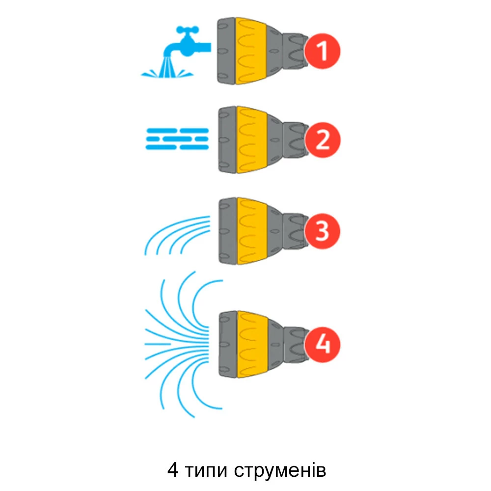 поливальний пістолет з чотирма типами розпилення. З таким
